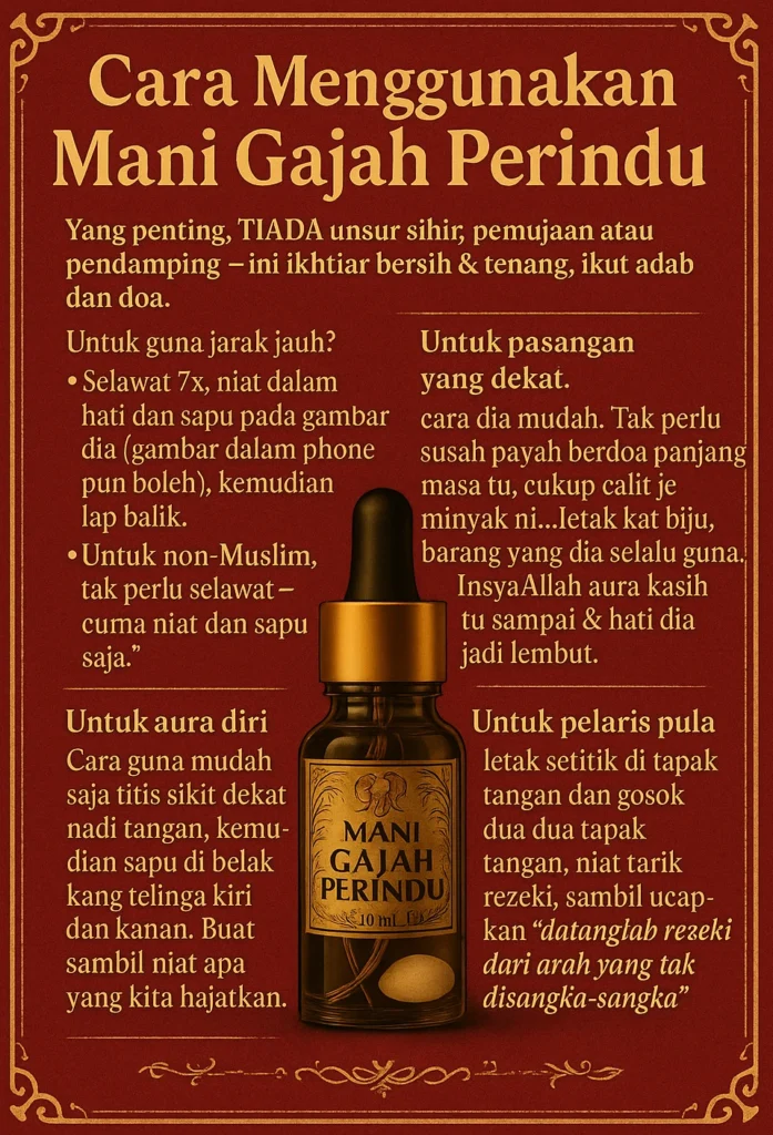 Ia adalah gabungan dua ramuan pengasihan paling berpengaruh dalam warisan Nusantara, Mani Gajah dan Bulu Perindu menyimpan energi penunduk, penarik dan pengikat hati serta kelebihannya yang lain 👇